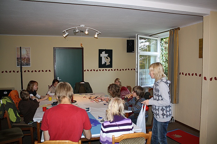 Arbeiten in den Gruppen. Herstellen von Meeresbewohnern