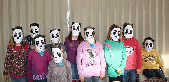 Arbeiten in den Gruppen. Herstellen von Landtieren. Hier die Gruppe der Pandabären.
