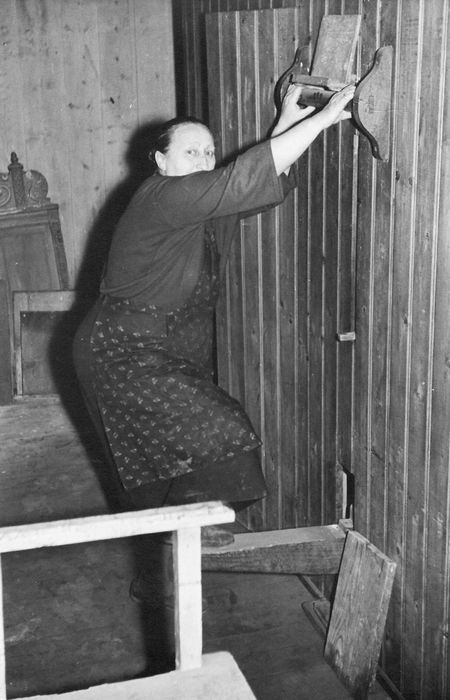 Das Foto zeigt unsere damalige Küsterin Oma Eilers beim Betätigen